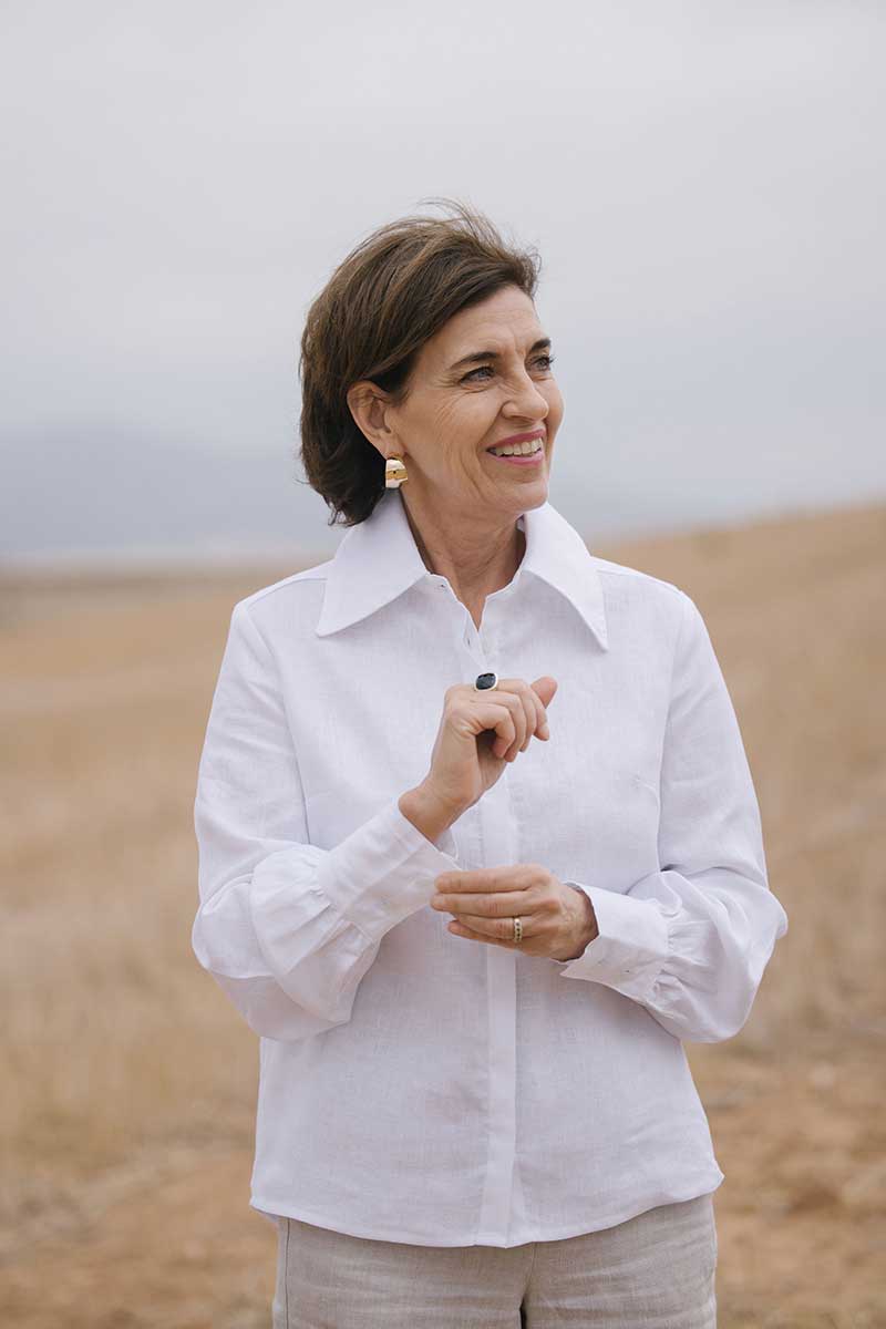 Featuring voluminous sleeves, elongated buttoned cuffs, and a soft yet structured collar, the Gina Blouse is finished with classic white buttons running from top to bottom. Designed for a relaxed fit, the pre-shrunk linen ensures durability while maintaining its natural drape. As a plant-based fabric, linen may experience slight shrinkage (2-4%) in the first few washes and requires ironing to maintain its crisp, timeless look.